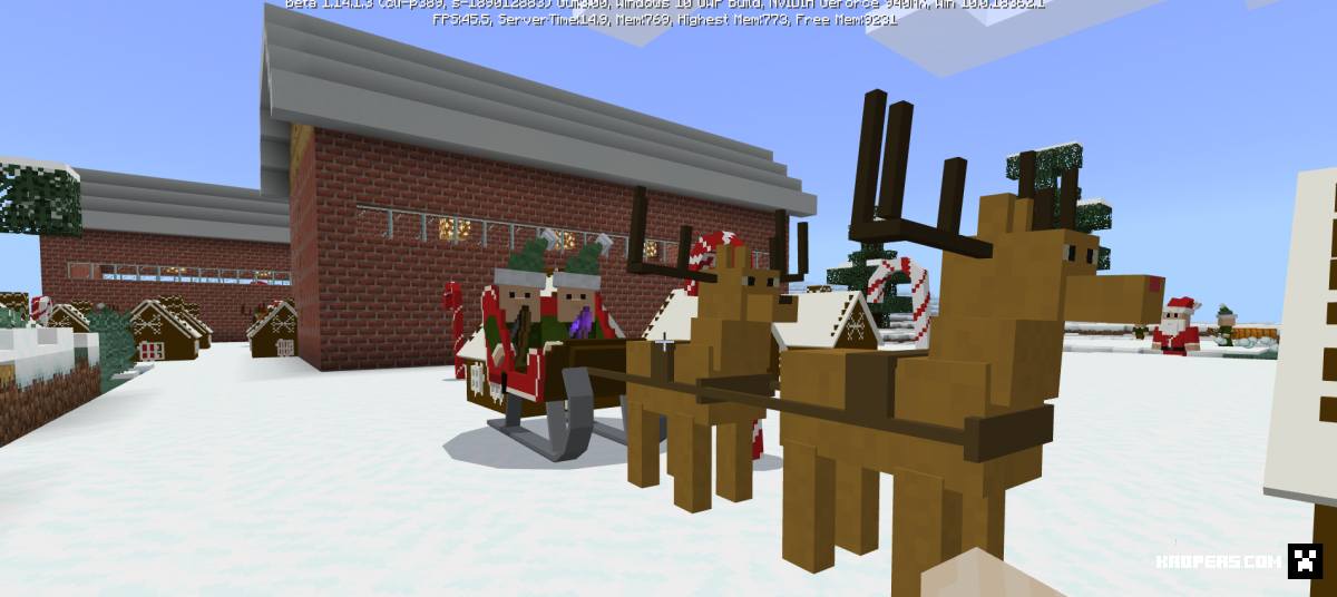 Рождество совсем близко! Пора готовиться к самому яркому празднику который бывает раз в год. Санта и его друзья Эльфы, будут готовить для вас подарки и Оленей. Будь также аккуратен, Санта может быть не в настроении, он может вас ударить затем вы получите небольшой урон. Также Санта воспроизводит достаточно приятные звуки, он может ха-хо-тать и раздобывать звуки "Рождества", не только Санта может воспроизводить звуки, всё остальное тоже может воспроизводится и вы это заметите! Отправляйтесь в Биом, где много снега и идут снежки днями и ночами.