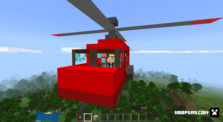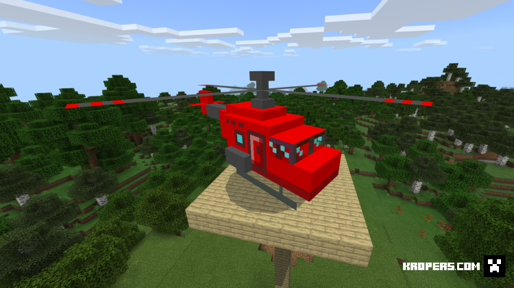 Этот аддон добавит вам вертолёт который умеет летать, возможно вам не понравится его управление, но вам стоит это проверить. Чтобы начать, вам нужно присесть и нажать на вертолёт чтобы положить туда седло, далее вы сможете ими управлять и лететь вверх. Также обращаю ваше внимание, вниз лететь невозможно, вертолёт сам будет лететь вверх. Вертолёт выглядит совсем как настоящий со своим ярким цветом, всего в наличии один цвет (красный). Надеюсь на понравится.