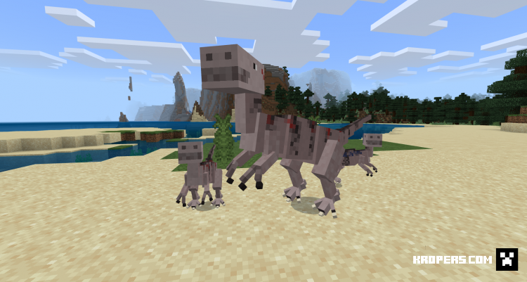 Аддон Velociraptor, добавит в ваш мир удивительных динозавров, они могут нападать и охотятся за вами, при таких условиях, они также могут размножаться их может быть всё больше и больше что создаст большую панику. Они быстро бегают и они могут с большой вероятностью найти тебя из далека, самое главное нужно аккуратно бродить по ночным лесам, так как вы их можете не заметить.