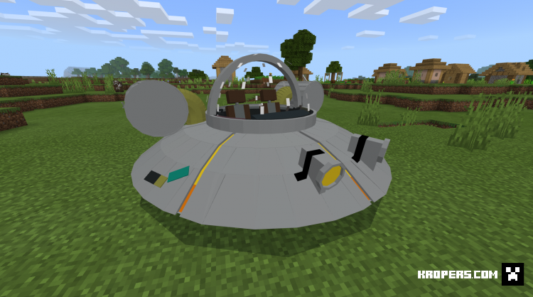 Этот аддон добавит инопланетный объект на котором вы можете летать и передвигаться, всё что вам нужно - уголь и ключ (седло). Кто смотреть мультфильм Рика и Морти, то мы могли заметить в некоторых моментах на чём они летают и благодаря автору он сделал копию из сериала. Водить легко, возьмите уголь - присядьте и накормите его, далее найдите ключ (он будет подписан как седло) и летайте по интересным местам мира!