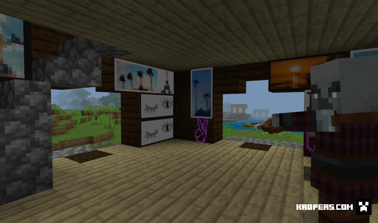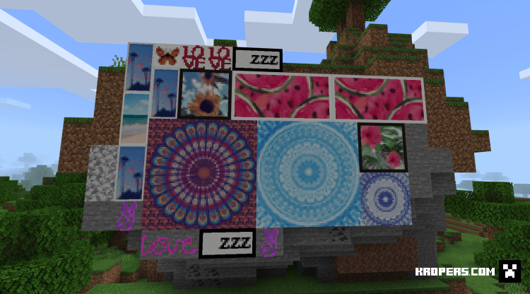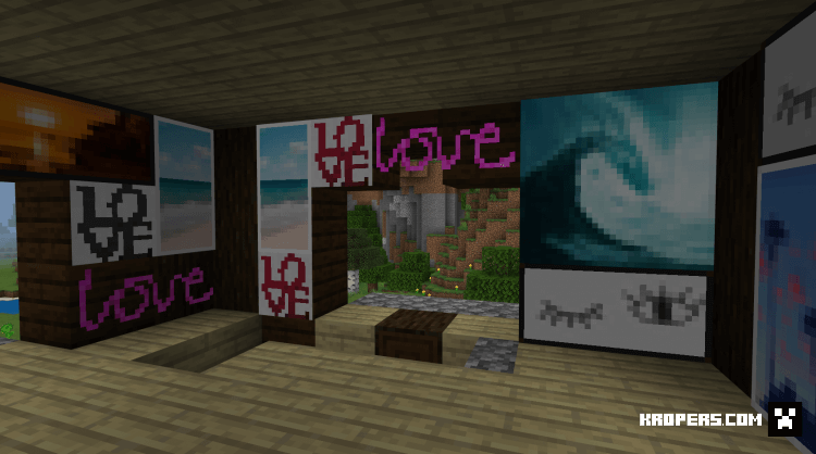 Если вам надоели картины которые встроены по умолчанию в Minecraft, то этот пак изменит на более красивые и яркие картины. В коллекции есть разные тематики картин, цветы, природа, пейзаж, рисунки, море, тексты с разными цветами.