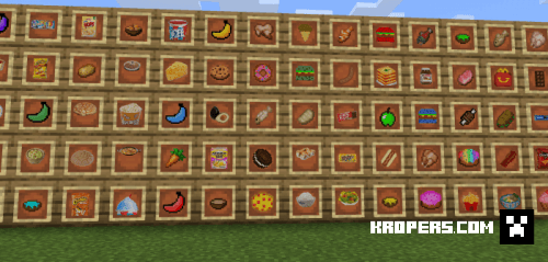 Их больше 100, чтобы взглянуть их скачайте мод, или взгляните на скриншоты чтобы увидеть парочку из них. Вы увидите мороженное, пиццу, пончик, кекс, суши, сыр, хлопья и т.д.