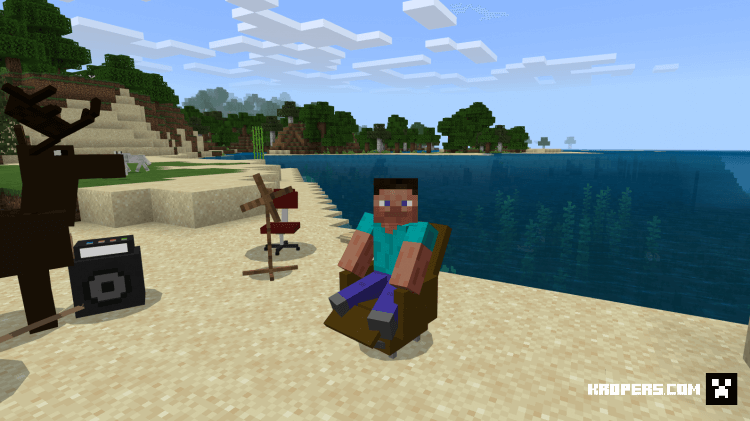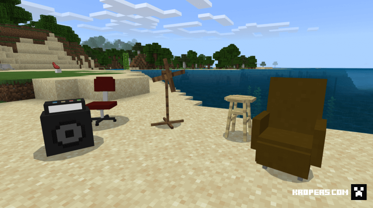 Это дополнение добавит книжную полку, вентилятор, стулья, кресло, магнитофон в вашу квартиру. Для того чтобы запустить музыку на магнитофоне, приучите его с помощью редстоуна, музыка воспроизводится до 13 минут.