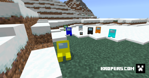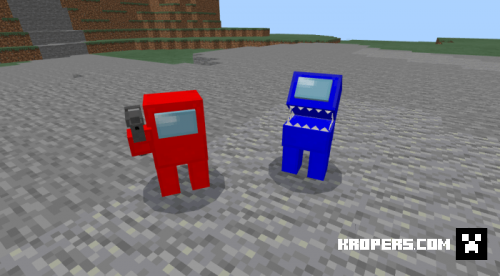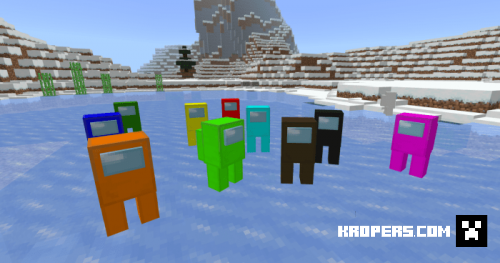С помощью этого аддона, в Minecraft будет добавлено несколько персонажей из видеоигры Among Us, где вы можете искать кто является самозванцем, вы можете получить скин любого члена из экипажа одного цвета.