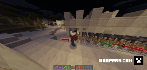 Синий световой меч, синий хрусталь кибера, красный световой меч, перекрестный красный световой меч, красный хрусталь кибера, зеленый световой меч, зеленый хрусталь кибера, фиолетовый световой меч, фиолетовый хрусталь кибера.