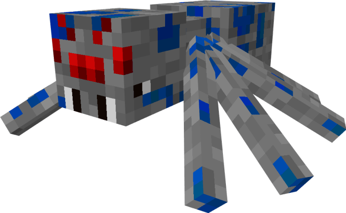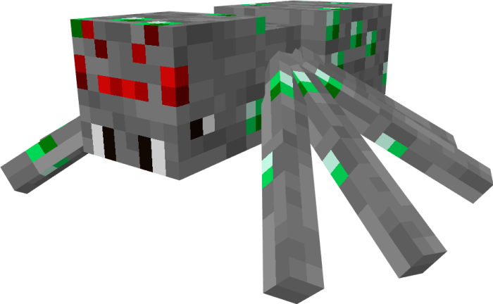 Аддон добавит 7 новых пауков с разными цветами, каждый паук будет копать разные минералы, в зависимости от их внешнего вида