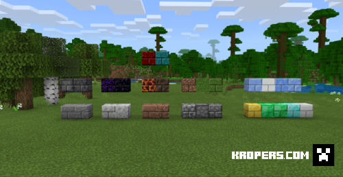 Данное дополнение добавит 28 новых блоков для строительства. Существуют три раздела аддона: Секция Природы, секция Пустоты, металлическая секция.