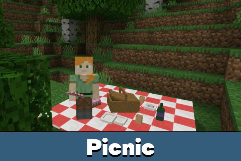 Another addition for TV Mod offers players to equip not only a living room with comfortable sofas and modern appliances. Also, players will be able to go on a real picnic, they will have a blanket, a basket, and delicious food at their disposal.