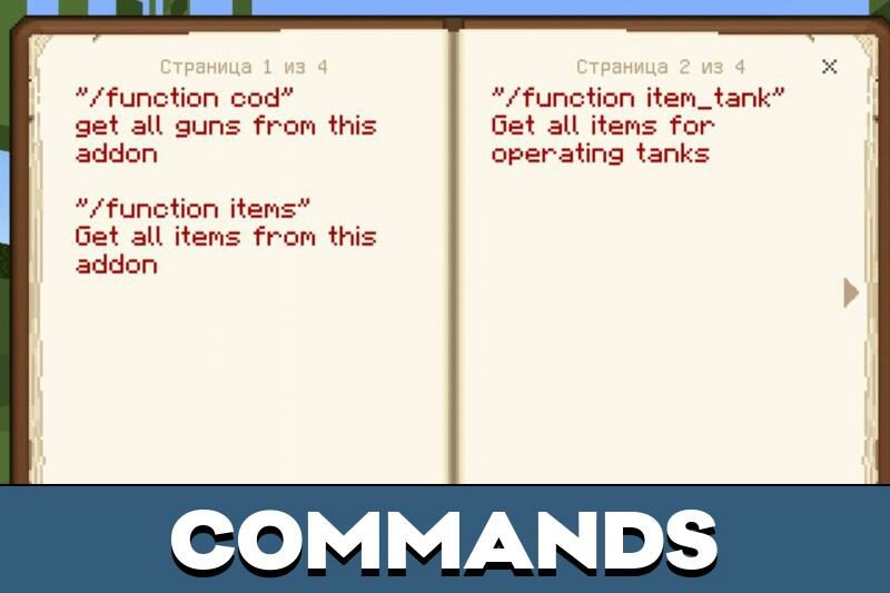 The author of the mod offers crafters creating a weapon for themselves using the /function cod command. Minecraft PE players will receive two machine guns and also a grenade from the Call of Duty.