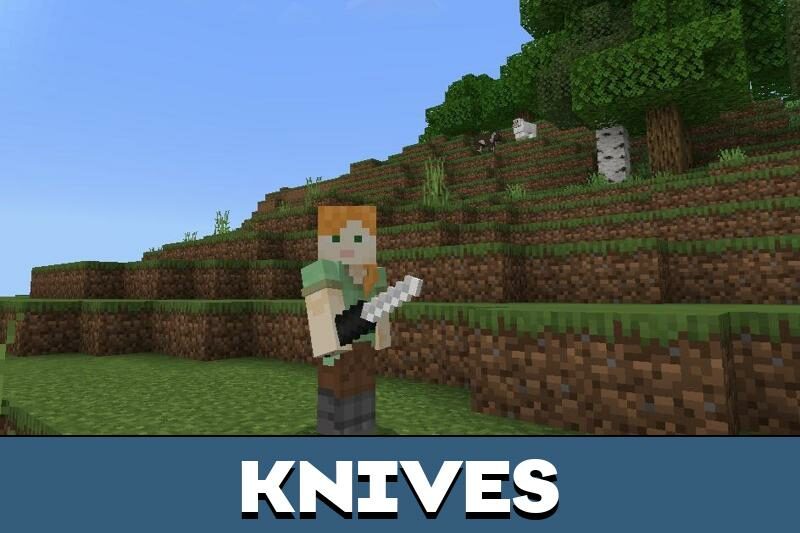 This mod will only add knives from Call of Duty. But these guns will allow Minecraft PE players easily defeat aggressive mobs. In survival mode, all types of knives can be crafted.