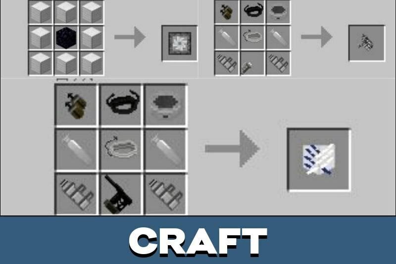 The mod gives Minecraft PE players three new crafting tables. That is how they can create weapons for battles from Attack on Titan. After that, they can get all the 3D mechanisms there.