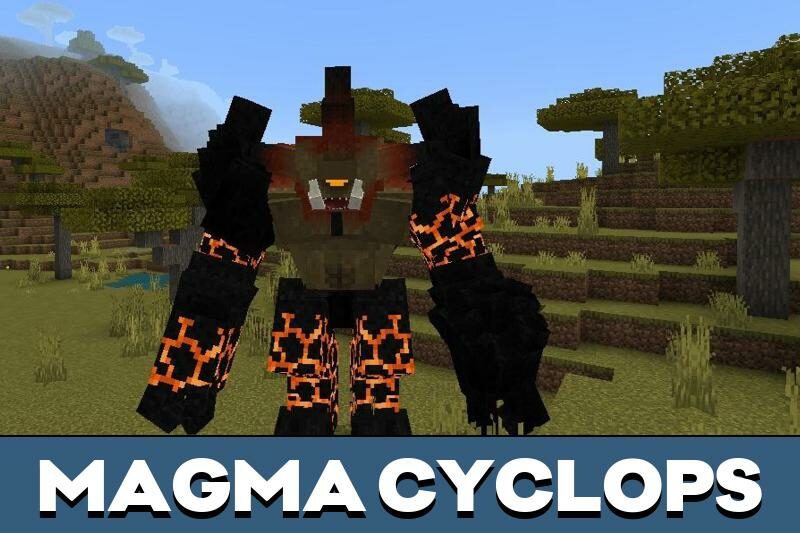 This mod will allow players to meet two types of cyclops in Minecraft PE: ordinary and magma. The first one has a health of 460 and is very aggressive to all mobs.