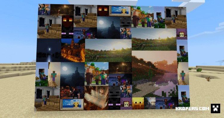 This texture replaces the usual pictures with more stylish and beautiful ones, the pictures were taken from different sources, for example, you can notice a picture from the new game Minecraft Dungeons.