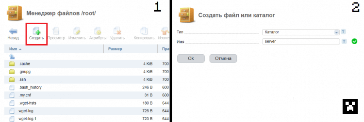 Заходим в папку rootВ папке root, вы должны создать папку с любым названием, там будут находится содержимое файлы сервера. Я назову папку server.