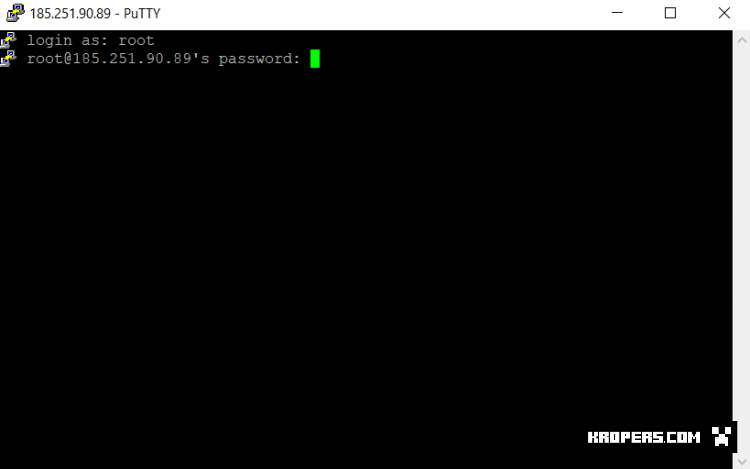 Откроется окно, вводим логин root (часто используемое) и ваш пароль который может быть выслан на вашу электронную почту, по дополнительным вопросам обращайтесь к вашему хостингу.
