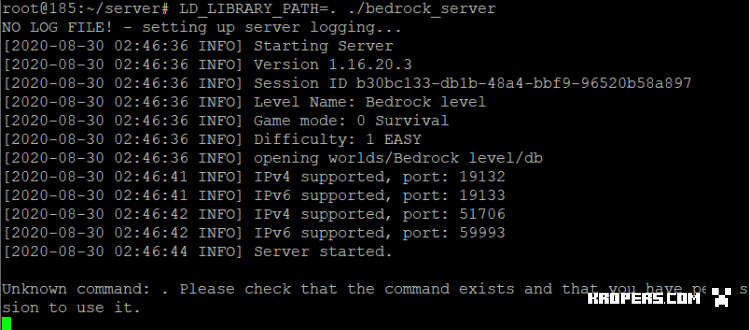 LD_LIBRARY_PATH=. ./bedrock_serverГотово. Должно получится примерно так: