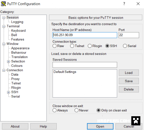 В текущем окне нам нужно вставить свой IP адрес VDS/VPS. Нажимаем "Open".