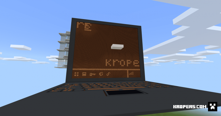 На этой карте был изображен огромный ноутбук, который полностью работает от красного камня и командных блоков. Она включает в себя несколько небольших функций, таких как набор текста, проигрывание музыки, поисковую систему Google и много чего прочего. Это определенно один из самых красивых и продвинутых компьютеров, созданных для базовой версии Minecraft.