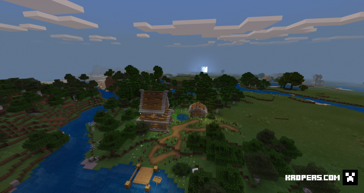 На этой карте у вас будет свой склад, дом, большой лес с большими ресурсами и деревня которая будет недалеко от вас. Внутри склада у вас будет четыре сундука где вы можете хранить все свои припасы на случай чёрного дня, за ним нужно следить очень внимательно, так как их могут обокрасть жители из небольшой деревни. Ваш дом будет уютным, на первом этаже будет находится всё необходимое для выживания, а на втором будет ваша кровать с окошком. Также у вас будет свой мостик, на котором вы можете ловить рыбу.