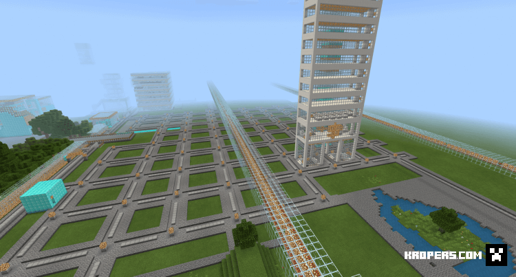 Этот город строился с 2017 года, за 3 года автор построил большую систему поездов, высоких зданий с светящимися камнями, большие торговые центры и магазины, дороги по каждым улицам мегаполиса.