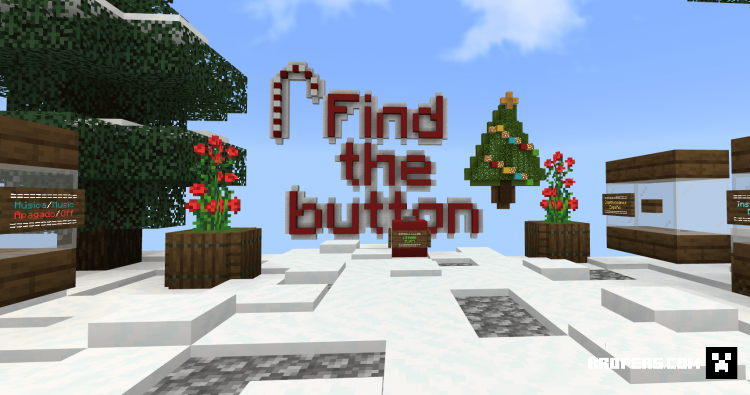 Это карта для поиска кнопки, игры с друзьями или по одиночке. Ваша главная цель - найти кнопку и нажать для неё чтобы пройти дальше и главное не сдаваться! Всего на карте десять уровней по тематике Рождество, из десяти уровней из одних, может быть для вас очень сложным. Исследуйте карту приключений и ищите кнопку. Если вы хотите более простую игру, вам помогут ваши друзья, не менее трёх человек должно быть в команде.