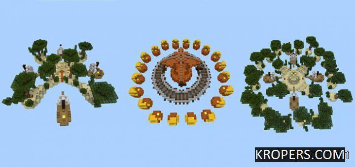 Вы немного отстанете от запуска игры SkyWars, но после этого каждый игрок будет появляться на отдельном острове SkyWars, и вы можете начать битву. Запасы сундуков не рандомизированы, но порядок нерестится.