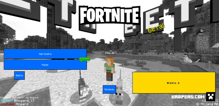 Если вы великий фанат популярной игры Fortnite, то эта текстура может вам понравится, оно изменяет только вид кнопок, интерфейс, до предметов данная текстура не дотронется. Текстура также доступна на русском, ещё про эту текстуру можно сказать что она может вам казаться слишком яркой, во время игры вы можете заметить что графический интерфейс тоже будет первоначально изменён, цвет текстуры изменить невозможно, вам будет доступен стиль по умолчанию с синим и жёлтым которые наиболее часто можно увидеть.