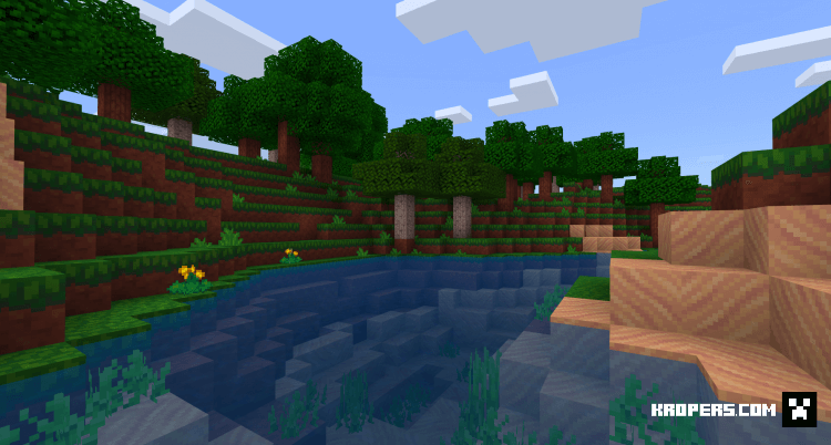 Это простой пак который изменит все деревья, землю, мобов, воду и интерфейс игры, у этой текстуры есть несколько особенностей которую делает игру уникальной и красивой ночью и днём.