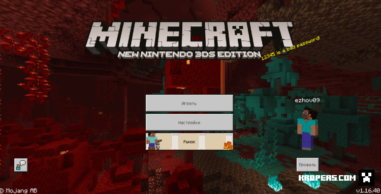 Эта текстура позволяет использовать названия различных платформ от Java до Education Edition, даже таких старых, как Pocket Edition! Он содержит восемнадцать различных заглавных текстов на выбор.