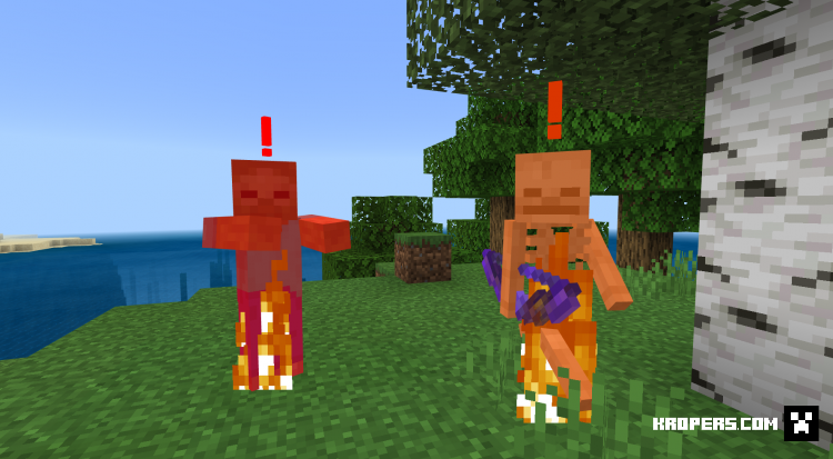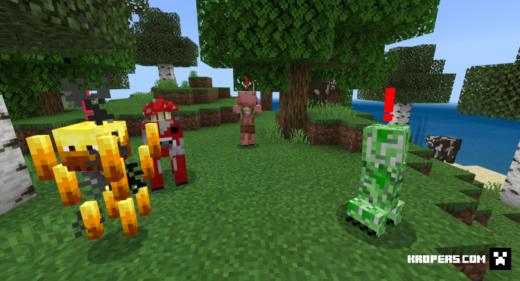 Этот пак добавляет знак "!" чтобы вы могли узнать, нападает ли на вас опасный моб. Знак работает только на опасный мобах, на корову, свинью работать не будет.![]()