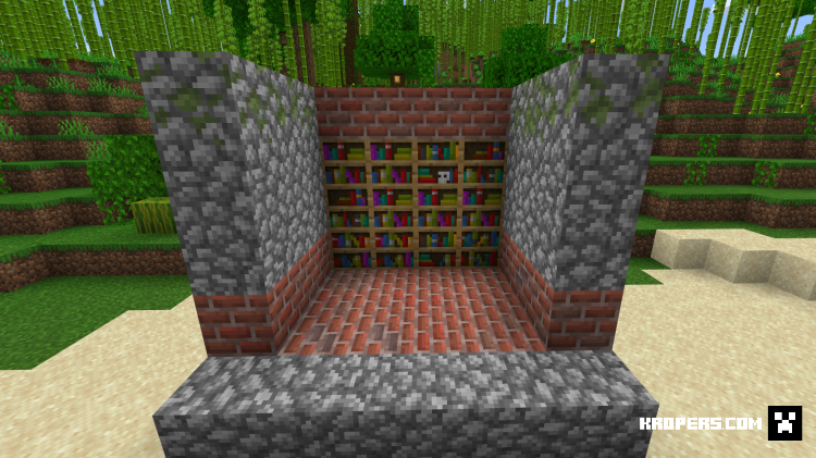 Данный текстур-пак заменит 4 разных вариантов блоков, текстура заменит книжный блок, кирпичи, булыжник, мохнатый булыжник. Как пишт автор, в будущем станет ещё больше блоков.